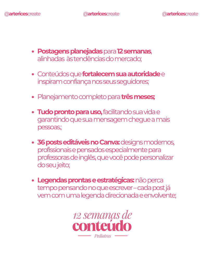 Manter uma presença consistente e impactante no Instagram pode ser desafiador, especialmente quando você precisa conciliar isso com outras responsabilidades. Pensando nisso, desenvolvemos um serviço completo que entrega 12 semanas de conteúdo planejado para facilitar a sua vida e elevar o seu perfil a um novo patamar e ao mesmo tempo te inspirar para manter seu perfil vivo e constante.